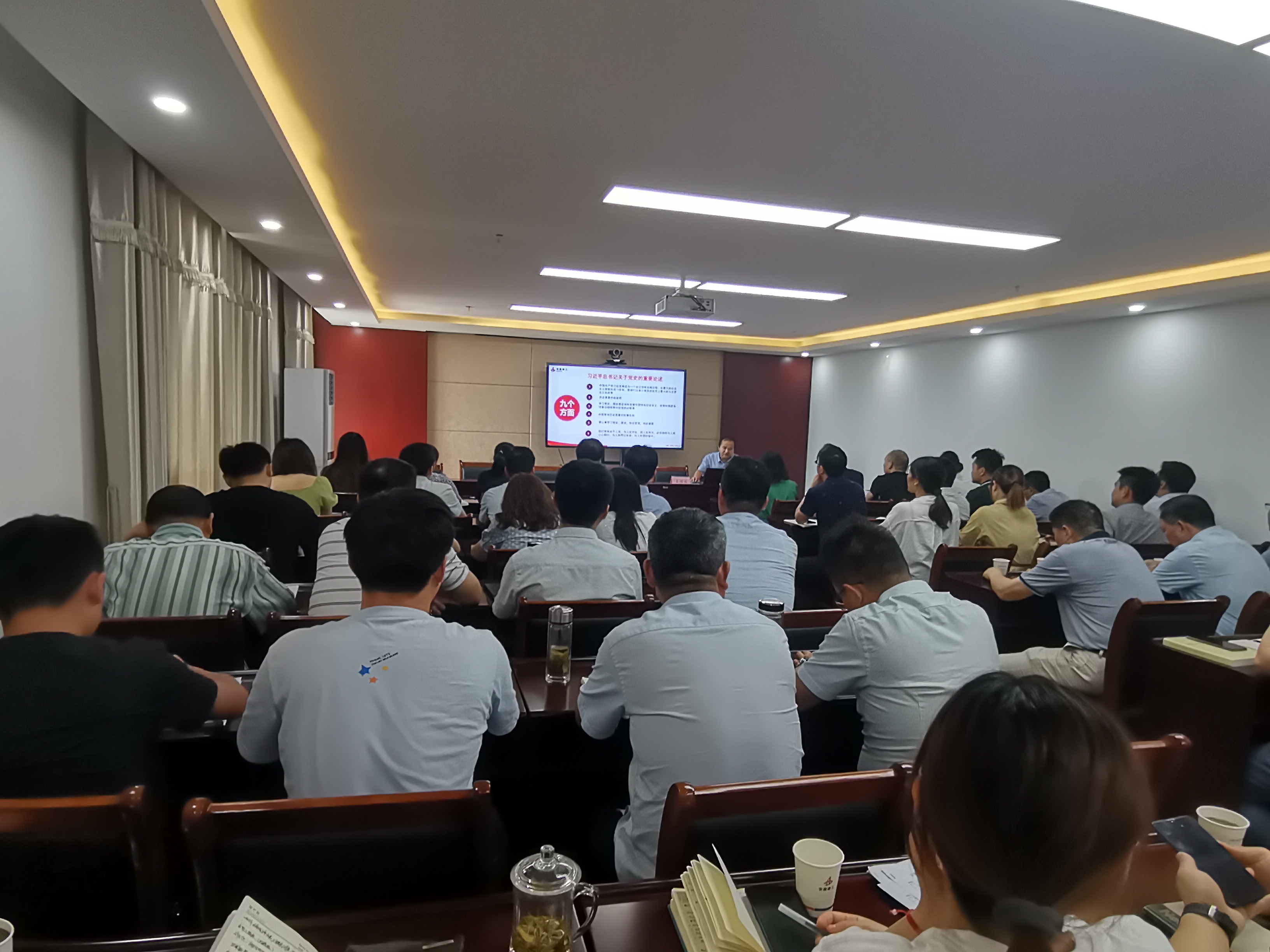 按照公司黨委黨史專題宣講工作相關(guān)要求,為慶祝中國共產(chǎn)黨成立100周年,深入學(xué)習(xí)貫徹習(xí)近平新時代中國特色社會主義思想,推動黨史學(xué)習(xí)教育工作扎實開展,廣泛營造“學(xué)黨史、悟思想、辦實事、開新局”的濃厚氛圍。6月8日下午,公司財務(wù)總監(jiān)王繼成為三公司、八公司、裝飾公司專題宣講黨史。三家單位領(lǐng)導(dǎo)班子、黨員、科室負(fù)責(zé)人、項目負(fù)責(zé)、技術(shù)負(fù)責(zé)共50余人參加。