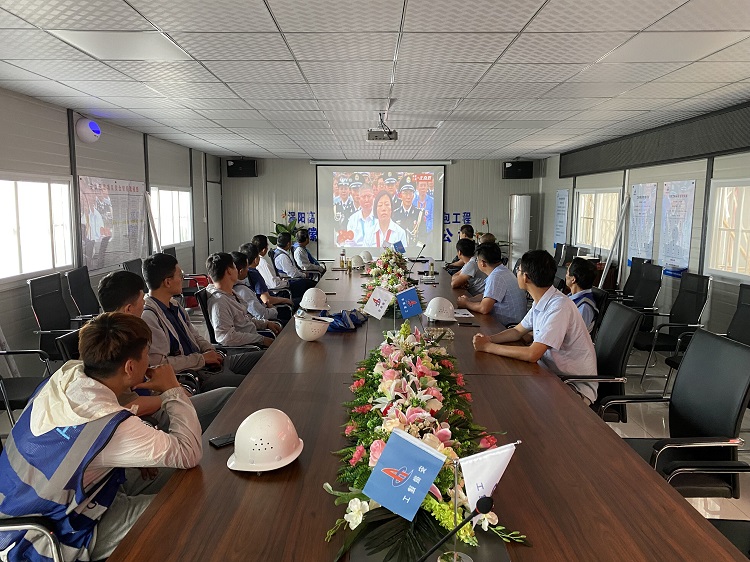 大連公司組織管理人員集中收看直播,其中煙臺力高項目部在組織收看節(jié)目之余還舉行了升旗儀式