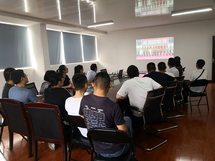 新鑫檢測公司組織職工在會議室集體收看大會直播