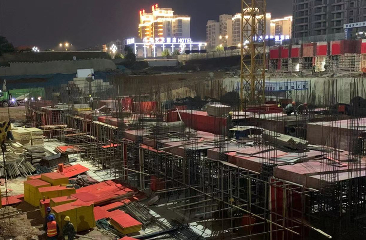蚌埠公司淮南拓基鼎元世家項目假日期間合理排班,組織夜間澆筑混凝土。