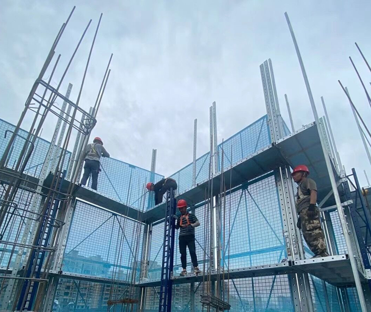 架業公司國慶假期期間,一線職工安裝爬架搶工期。