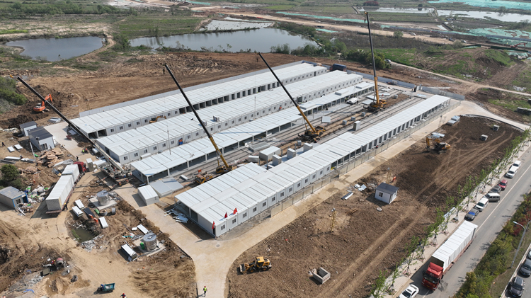 面對嚴峻的防疫形勢,安徽三建積極配合肥西縣關于方艙醫院建設工作的有關要求,以疫為令、聞令而動,第一時間成立項目建設指揮部,由公司領導親自坐鎮指揮,公司緊急召開備用點建設專題會議,統一部署物資調配、人力資源組織、施工圖紙和方案設計等工作,并設立多個工作專班,責任到人確保各項措施落實到位,抽調工程精干力量70余人,火速馳援施工一線。