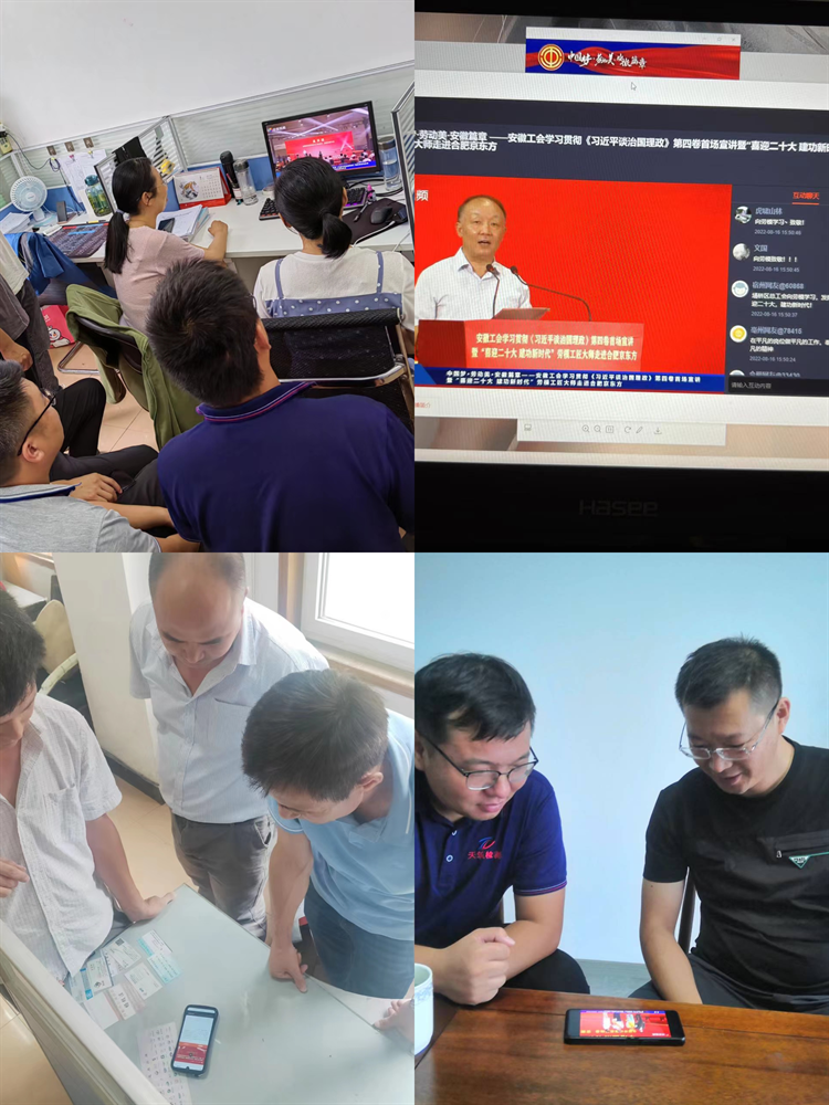 中國夢·勞動美·安徽篇章——安徽工會學習貫徹《習近平談治國理政》第四卷首場宣講暨喜迎二十大建功新時代勞模工匠大師走進合肥京東方活動于2022年8月16日下午在合肥舉行,安徽三建所屬38個基層單位、900多名干部職工準時收看活動直播。