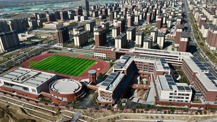落成投用的新教學(xué)樓整體呈“U”字形,宛如一條臥龍,紅白相間的墻面與藍(lán)天白云相映生輝。教學(xué)樓旁,學(xué)校的“新客人們”在新建起的運(yùn)動(dòng)場(chǎng)上舉辦升旗儀式,同學(xué)們腳下所踩的每一寸土地,目光所及的每一處建筑,都是由一群日夜奮戰(zhàn)的城市建設(shè)者的心血澆灌而成。