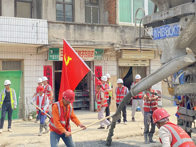 三十崗鄉(xiāng)三豐路集鎮(zhèn)段全長240m,原為4米寬村村通水泥路,因年久失修,路面有局部坑洼,給當(dāng)?shù)氐拇迕裆畛鲂袔硪欢ǖ牟槐悖藯l道路也是項目土方外運的必經(jīng)之路。為感謝當(dāng)?shù)卮迕駥椖拷ㄔO(shè)的支持,今年6月,八公司清瀾苑項目臨時黨支部主動承擔(dān)起該條道路的修復(fù)義務(wù),并根據(jù)現(xiàn)場實際情況制定了針對性強、可實施性高的道路修復(fù)施工方案。在修復(fù)過程中,項目黨員干部和多名經(jīng)驗豐富的一線職工頂住炎熱、突擊搶修,為道路品質(zhì)提供了有力保障。村民們?yōu)楦兄x搶修組,紛紛拿來礦泉水、西瓜等。