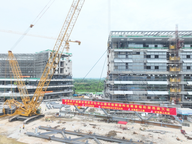 7月13日上午,肥西縣產(chǎn)城融合項(xiàng)目文化中心圖書館鋼結(jié)構(gòu)連廊首榀桁架吊裝成功,標(biāo)志項(xiàng)目建設(shè)取得階段性進(jìn)展。