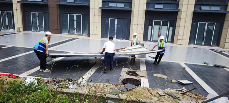 本次臺風造成了項目積水嚴重、場地道路受損、現場圍墻倒塌等嚴重問題,為排除各類安全生產隱患,保障職工群眾生命財產安全,7月30日,項目全體管理人員迅速行動,搶修受臺風暴雨損毀的道路、臨電設施、圍擋等,并加強災后環境消殺、道路清障、積水清理等,全力開展災后恢復工作。
