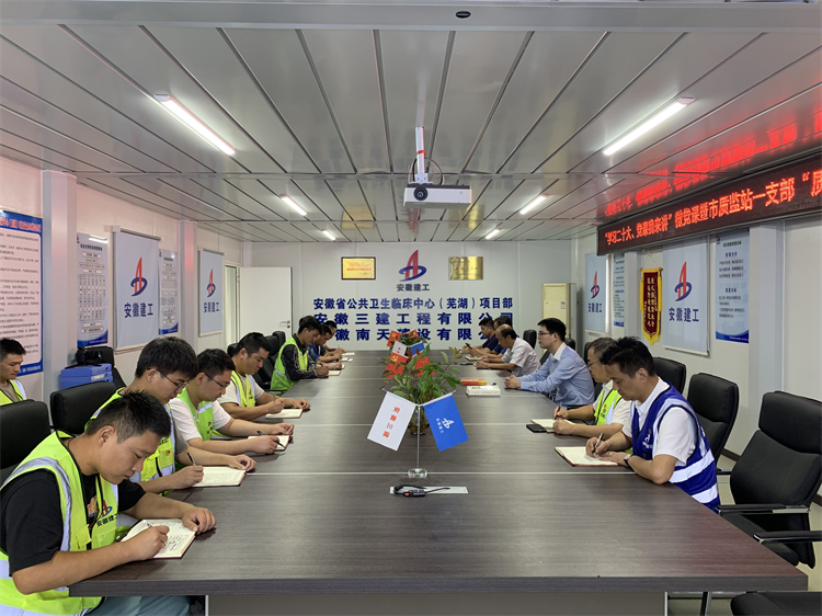 為更好的開展全國質量月活動,9月13日上午,公司承建的安徽省公共衛生臨床中心(蕪湖)項目邀請蕪湖市質量監督站房建科吳平為項目各參建單位開展一堂生動的微黨課活動。