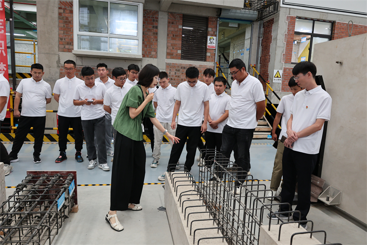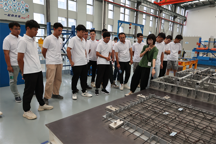蕪湖市職業(yè)技術學院工訓館共分工法樓和裝配式實訓基地兩個板塊。在學院老師的講解下,青年職工學習了基坑支護、降排水工程、裝配式疊合梁板、裝飾裝修等300多個實體樣板以及套筒灌漿的操作技術要點,聽取了裝配式現(xiàn)場施工工藝模擬和構配件預制過程的講解。同時,講解老師具體展現(xiàn)了施工現(xiàn)場的各種應用知識?!氨敬位顒訁⒂^的工法樓讓我大開眼界,1:1還原了施工現(xiàn)場的建筑模型,最大程度把施工現(xiàn)場各個環(huán)節(jié)展現(xiàn)出來,施工工藝一目了然,讓人印象深刻?!眳⒓佑^摩的大學生陳澤邦說道。