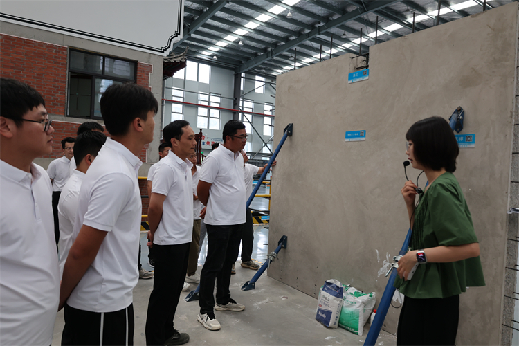 當天下午,在分公司副經(jīng)理潘金偉的帶領下,大家來到高速時代學府項目觀摩,參觀了質(zhì)量樣板展示區(qū)、室內(nèi)工藝樣板展示區(qū)、VR體驗館、安全宣講臺等,重點了解部分項目建設亮點,如鋁膜樓棟窗臺企口、粉刷壓槽提前優(yōu)化、智慧工地應用管理等。隨后,潘金偉結合項目現(xiàn)場的施工工藝給大家作了簡要介紹。