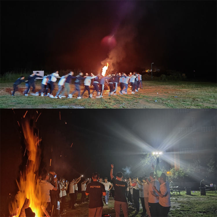 夜晚的草地上,大家暢所欲言、促膝長(zhǎng)談,聊工作經(jīng)歷、成長(zhǎng)故事和生活向往。篝火旁,大家載歌載舞,一片歡聲笑語(yǔ),簇?fù)頍肓业幕鹧鎺?lái)的不僅僅是溫暖和歡樂(lè),還有那升騰的夢(mèng)想。