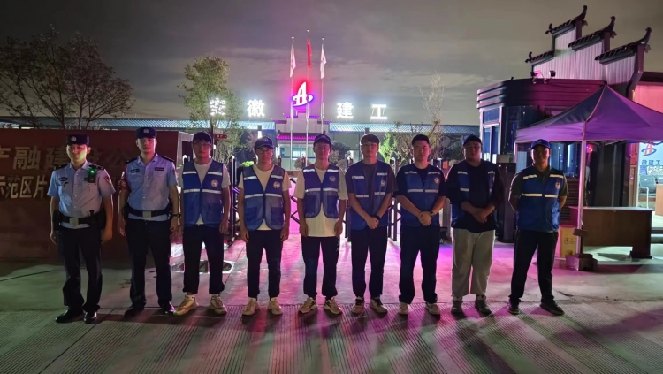 為了進一步加強“雙節”期間項目穩定安全,守護周邊群眾生命財產安全,確保依舊奮戰在項目一線的職工度過一個平安快樂的“雙節”假期。肥西產融項目“蓮豸”義警服務隊聯合屬地花崗派出所開展夜間巡邏活動。