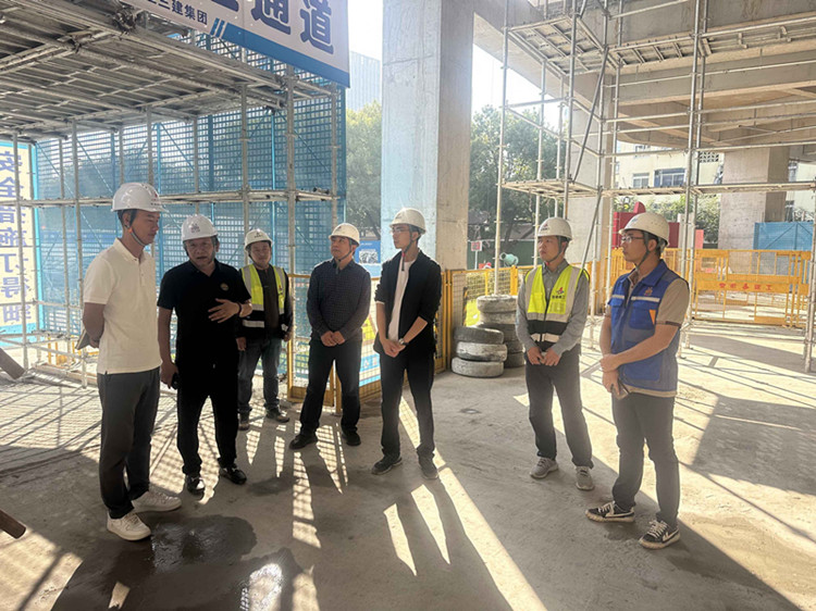 唐詩一行深入施工現場,實地查看項目建設進展、安全生產情況,認真聽取項目近期工作匯報,對項目過程質量、進度、安全管控予以肯定,并對項目工作提出要求:一是抓好現場安全生產,增強施工人員安全意識,排查整改現場安全隱患,保證安全施工;二是對施工現場持續進行質量管控,嚴格把關結構質量,爭創優質工程;三是要提前謀劃好后期的精裝修工程,做好前期準備工作,確保現場施工持續順利進行。