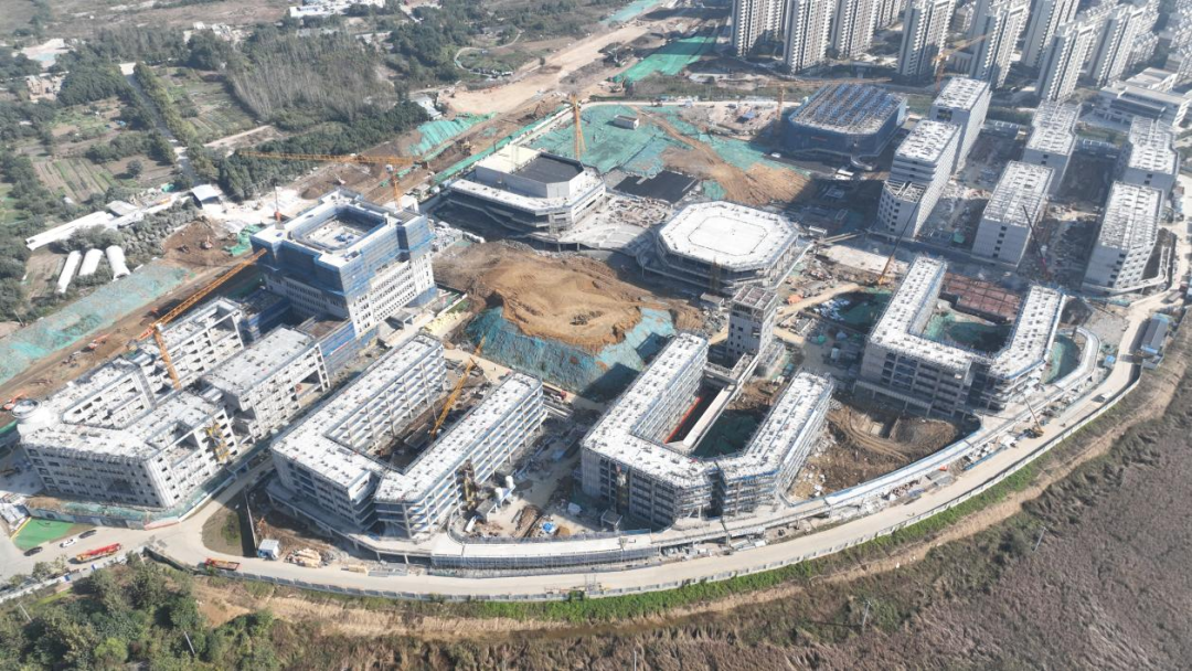 規劃小學項目教學南樓、科藝樓、教學北樓、體育綜合樓4棟單體已全部完工,目前教學南樓、科藝樓主體結構已施工完成,進入裝飾裝修階段,室內水電安裝同步進行,教學北樓、體育綜合樓處于墻體砌筑及二次結構施工階段。規劃中學項目各單體主體結構已全部封頂。其中教學南樓、科藝樓、女生宿舍樓二次結構施工也即將結束,其余各棟二次結構施工均有序進行。