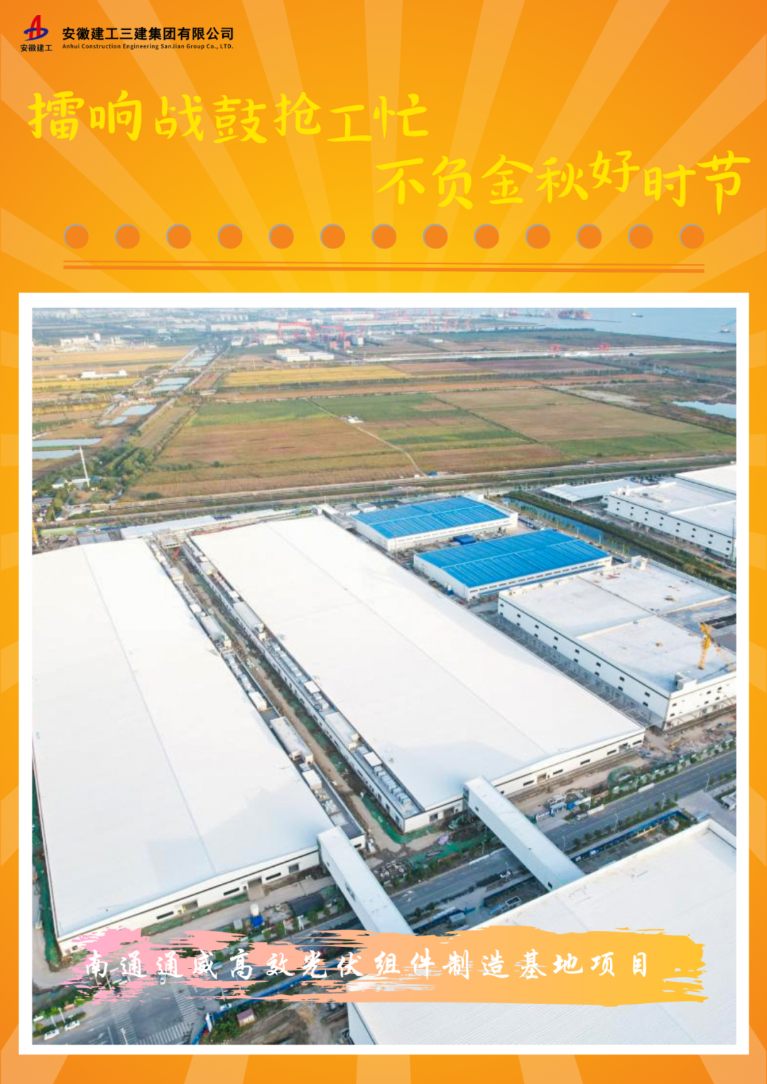 南通通威高效光伏組件制造基地項目共分為二個地塊,總建筑面積約31萬平方米。深秋來臨,一批“不打烊”的項目工作者、一線的工人們依舊堅守在自己的崗位上,加班加點促生產(chǎn)、忙建設(shè),掀起大干熱潮。目前,項目已完成所有單體的封頂,正在進(jìn)行裝飾裝修施工。項目建成后,將提高江蘇地區(qū)光伏產(chǎn)業(yè)生產(chǎn)產(chǎn)能,提升南通地區(qū)高新產(chǎn)業(yè)發(fā)展,為當(dāng)?shù)貏?chuàng)造更多的就業(yè)崗位。