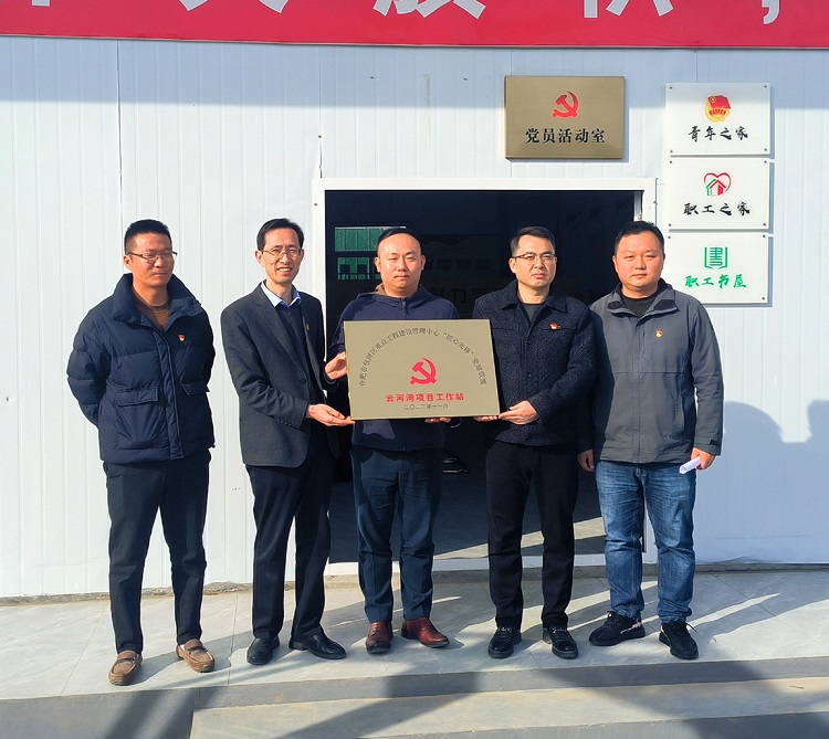 為進一步發揮“兩個作用”,深入推進黨建與業務深度融合,11月30日上午,包河區重點工程建設管理中心“匠心先鋒”黨建聯盟首個工作站授牌儀式在公司云河灣項目黨員活動室舉行。包河區重點工程建設管理中心副主任闞言衛出席并揭牌。分公司和項目相關負責人,甲方、監理代表以及來自中鐵四局、中建五局、上海一建等單位近40名黨員代表參加了揭牌儀式。