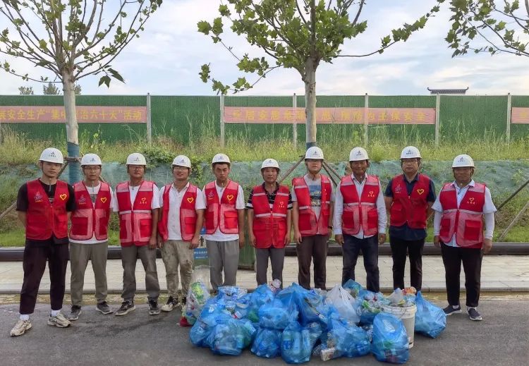 2023年7月,公司承建的合肥園博園南入口項目黨員及班子帶領團員青年發揚奉獻精神,利用每日工作間隙清理園區內散落的垃圾,并進行分類處理。此次活動的開展,不僅增強了大家的奉獻意識和社會責任感,也有助于項目保持“工完料凈場地清”的良好工作習慣。