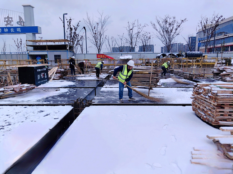 又看!在蜀山經濟產業園安裝項目施工現場,雖然寒風凜冽、漫天飛雪,但項目依然保持火熱的建設狀態。為保障項目施工進度和現場施工安全,全體管理人員都參與到清掃施工板面的積雪當中。他們堅守崗位、默默奉獻,全力確保各項工程節點的順利完成。目前,蜀山經濟產業園安裝項目地下室負二層已全面完工,一、二號樓負一層和三號樓一層預埋也已經全部結束。