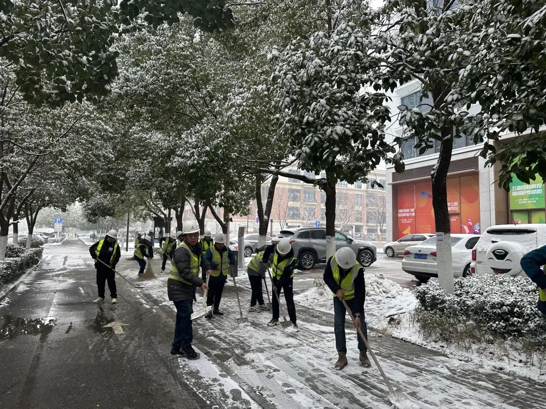 合肥瑤海YH202307地塊項目全體管理人員開展義務(wù)清雪,助力城市除冰掃雪清障活動,對以項目為中點向兩邊輻射1公里范圍內(nèi)的裕溪路路面積雪進行清掃。
