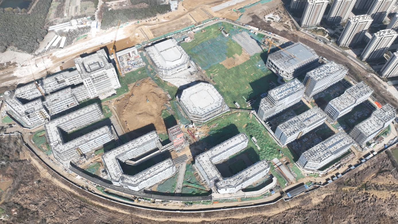 合肥市第一中學教育集團淝河校區項目總建筑面積217340㎡,由14棟地上單體及地下車庫組成,計劃辦學規模120個班,約6000人。