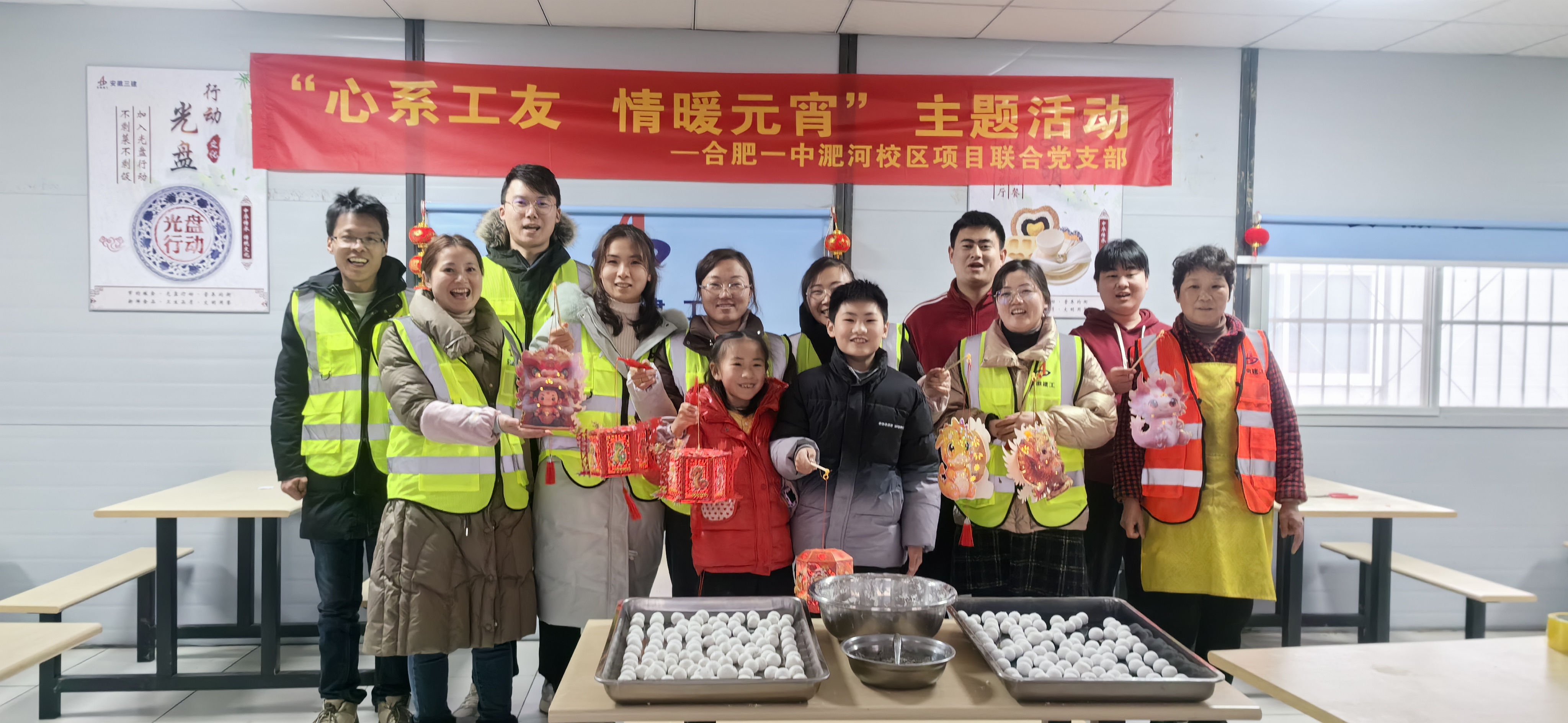 十一分公司合肥一中淝河校區項目聯合黨支部開展“心系工友, 情暖元宵”主題活動,項目全體員工一起包元宵、吃元宵,在工地上感受家的溫暖,將節日氣氛“拉滿”。