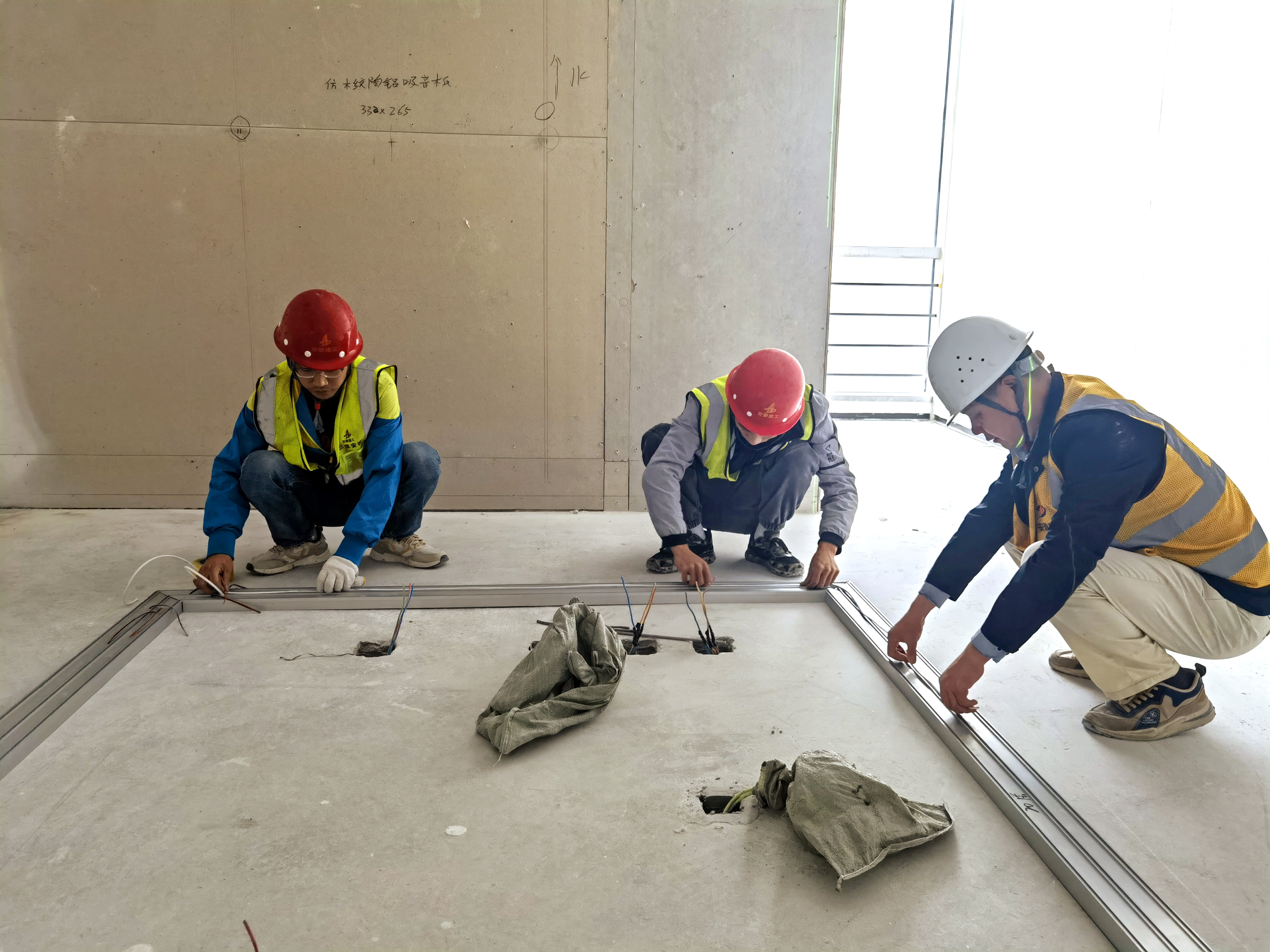 安裝項目部管理人員利用午休時間爭分奪秒解決現場問題,為了確保項目順利揭牌,項目部每天針對各層各房間列出銷項清單,掛圖作戰,以房間為銷項單位,確保項目進度達到預期目標。