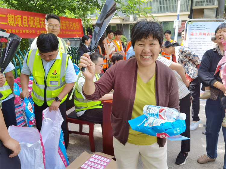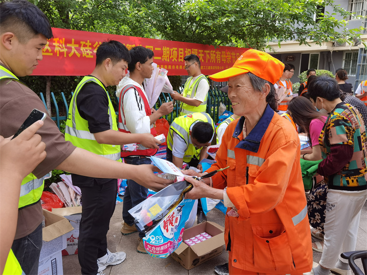 活動中向居民發放了近500份《施工聲響告知書》,向大家解釋說明該工程目前正處于基礎階段施工,有些聲響無法避免的原因,進行了充分溝通,獲得了大家的理解。活動向參加的每一位母親贈送了康乃馨,表示節日的祝福。