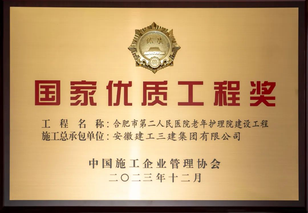 12月24日,2022-2023年度第二批國家優(yōu)質工程獎獲獎名單揭曉。安徽建工三建集團承建的合肥市第二人民醫(yī)院老年護理院建設工程榮獲“國家優(yōu)質工程獎”。至此,公司已累計獲得4項“國家優(yōu)質工程獎”。