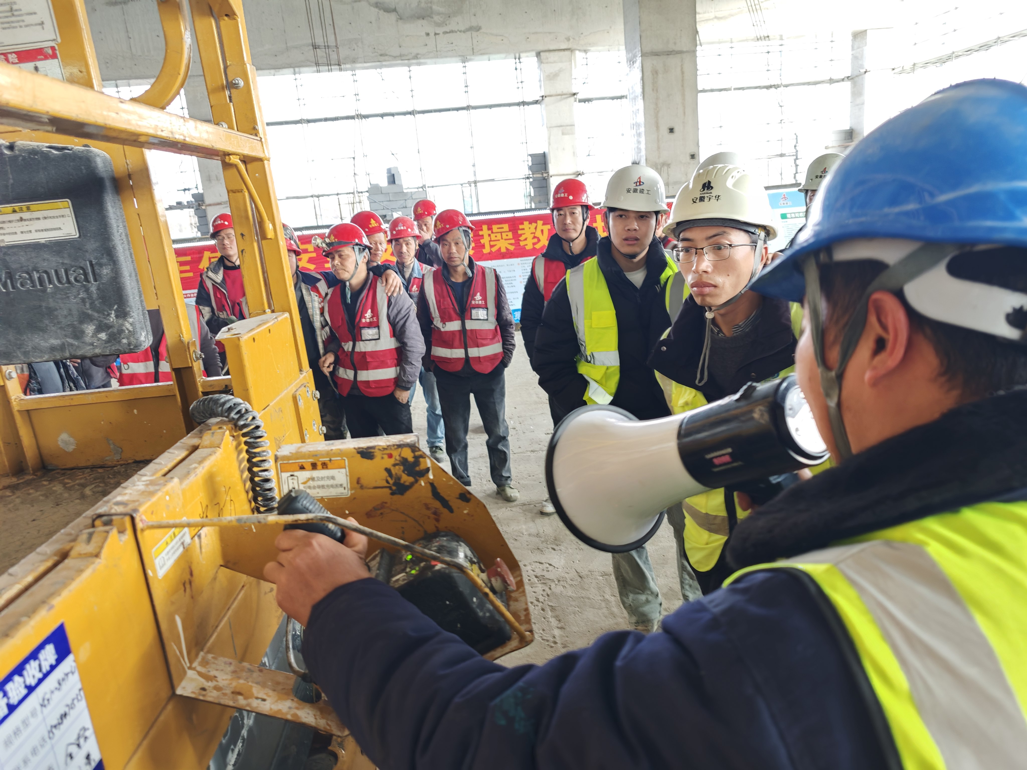 分公司黨支部充分發揮“把方向、管大局、保落實”作用,以“黨員技術攻堅小組”為載體,精準對接項目安全需求。通過黨支部協調資源,特別邀請弋江區新型產業園項目剪叉式高空作業車供貨單位技術負責人開展“黨建+技術”雙師教學。參訓人員圍繞設備結構裝置、操作流程等核心要素展開深度學習,重點突出“黨員安全責任區”設備監管要求,將“持證上崗、規范操作”的剛性規定轉化為黨員帶頭踐行的行動準則。現場設立黨員安全示范操作臺,通過“黨員帶群眾”“師帶徒”的紅色傳承模式,確保技術規范入腦入心。