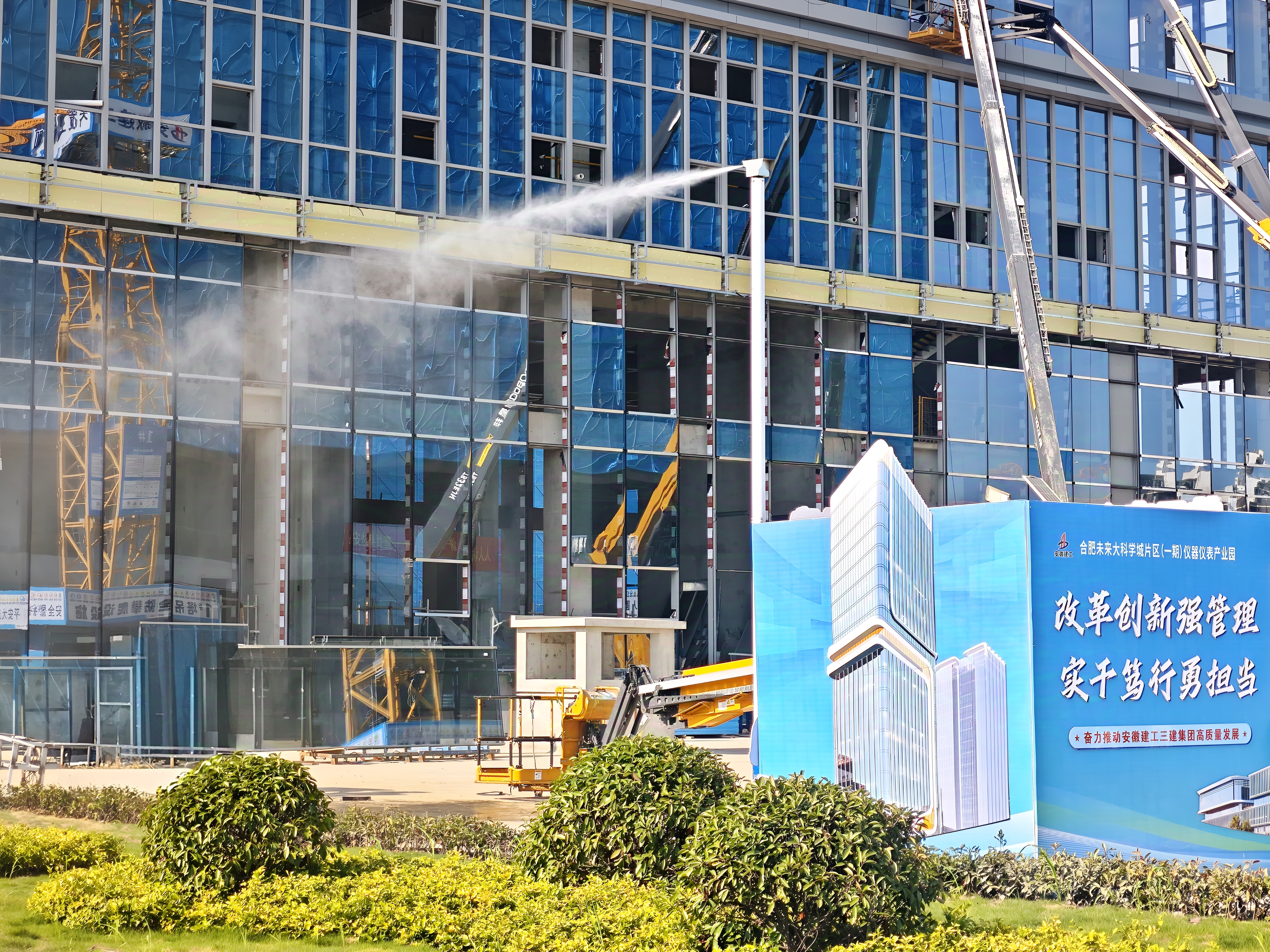 安裝公司合肥未來大科學城一期儀器儀表產業園安裝項目部為應對高溫天氣所帶來的挑戰,精心謀劃并配合布設安裝了智能高壓防塵噴霧設備。此項裝置創新運用手機程序控制APP,能夠實現自動調節噴頭噴水時間和間隔時長,既能有效節約水資源,又能根據實際需求靈活調節出水效果。隨著高溫天氣的持續,該項設備正有條不紊地運作,細密的水珠從噴頭中噴涌而出,形成一層薄薄的水霧在空氣中彌漫開來。這一措施不僅能起到良好的防塵效果,還能有效降低項目現場的施工溫度,給奮戰在一線的工人們送去絲絲涼意,為項目的順利推進營造更為舒適、安全的現場環境。
