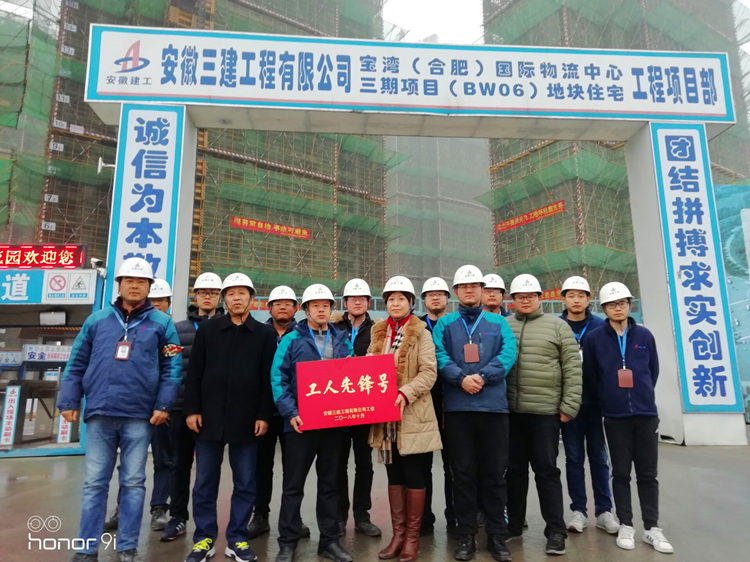 1月4日,公司工會副主席馬榮琳蒞臨七公司寶灣三期住宅項目,對該項目創建公司“工人先鋒號”工程進行驗收并授牌。七公司工會主席趙立軍及項目創建小組成員代表項目接受授牌。