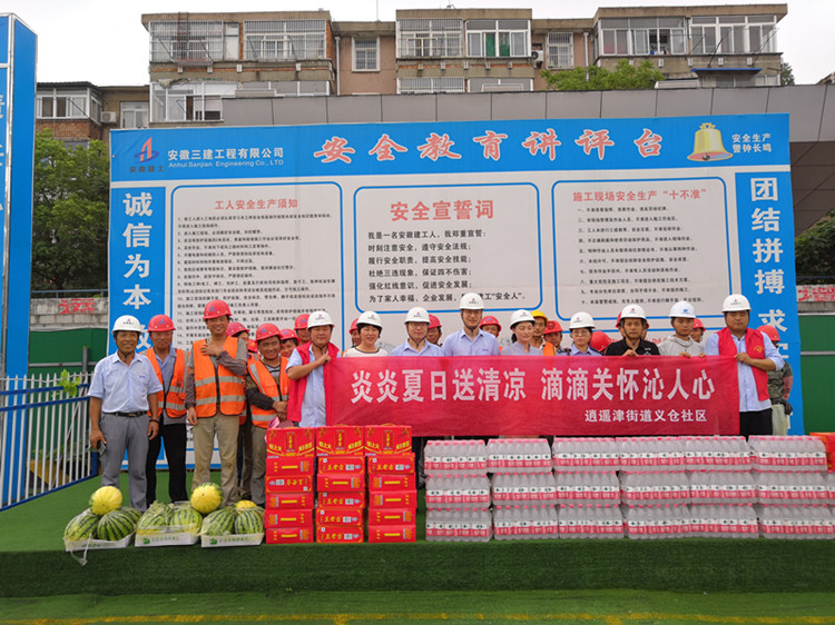 烈日炎炎,高溫酷暑,在領到防暑降溫用品后,項目施工工人員喜悅的笑容帶走了身體上的燥熱和疲憊。任鐘明表示,平時工作中,合肥三中綜合藝術樓項目能積極配合街道各項工作,為推進社區文明創建工作扎實有序地做出了榜樣,今后的工作中,希望項目部再接再厲,繼續支持街道各項工作。