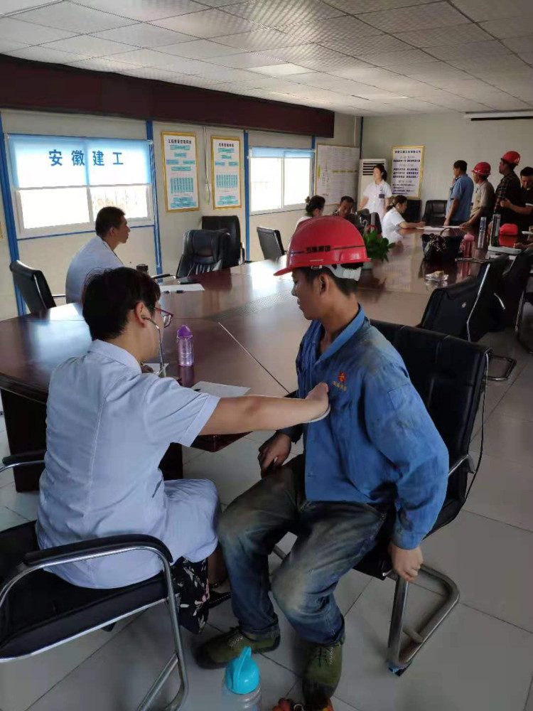 醫護人員攜帶體檢設備前往項目現場為大家進行了一次全方位體檢。體檢項目包括視力檢查、血壓、血糖、心電圖等。醫護人員對大家進行了逐項檢查,重點檢查農民工職業病患病情況,并有針對性地為大家講解了施工一線易患的疾病的一些預防措施。通過這次體檢,讓大家及時了解身體狀況,有針對性地進行預防治療,真正提升了他們的幸福感及歸屬感,激勵大家用更加飽滿的熱情投入到項目建設中去。
