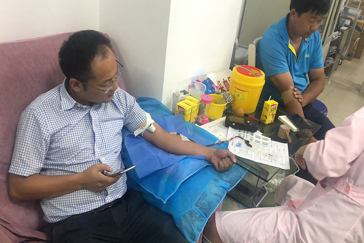 在中心血站醫務人員的統一安排下,依次進行信息登記、血液類型檢驗、靜脈采血等環節。 “此次是我第二次參加黨支部組織的志愿獻血活動,我希望通過自己獻血行為傳遞愛心,挽救生命。”海口藝境項目的青年黨員劉強獻完血說道。參加活動的職工中,既有多次參加無償獻血的“老志愿者”,有的項目經理和骨干,也有初次嘗試無償獻血的員工,更多青年黨團員帶頭捐獻。