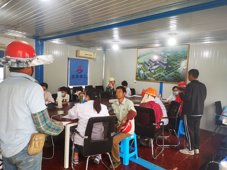 4月21日至5月22日,九公司淮南、亳州、滁州、河南鄭州的七個(gè)外地項(xiàng)目陸續(xù)組織開(kāi)展農(nóng)民工進(jìn)行體檢工作。為了不影響施工進(jìn)度,九公司要求各個(gè)項(xiàng)目部提前謀劃、緊密部署,精心組織,把醫(yī)院醫(yī)護(hù)人員請(qǐng)到項(xiàng)目一線,把體檢設(shè)備搬進(jìn)工地會(huì)議室,建立了臨時(shí)體檢中心。體檢內(nèi)容包括了血壓測(cè)量、視力檢查、心臟聽(tīng)診、五官檢查等項(xiàng)目。通過(guò)本次體檢,讓廣大農(nóng)民工朋友們對(duì)自身的健康狀況有了較為全面的了解。