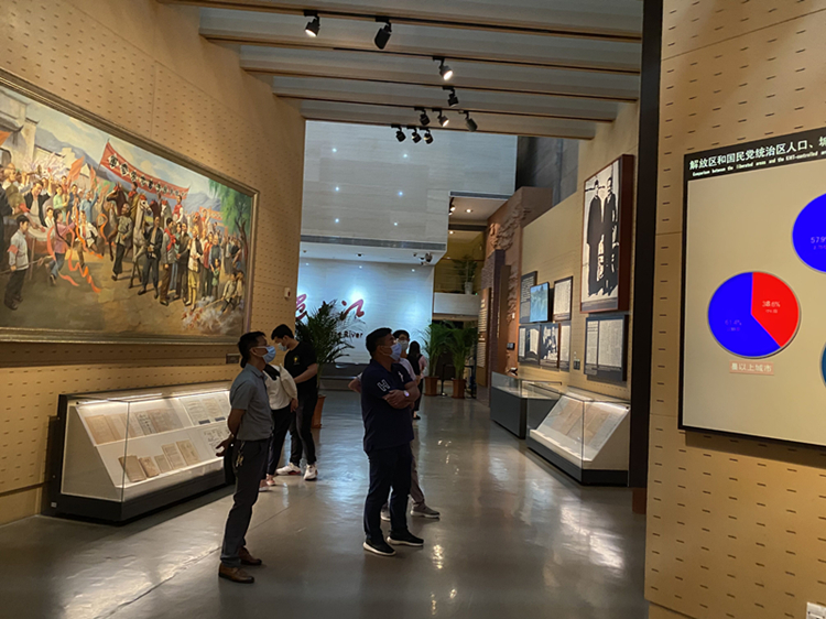 渡江戰役紀念館主體如兩艘巨型戰艦,氣勢恢宏。在渡江戰役紀念館南廣場,全體黨員和入黨積極分子懷著崇高敬意瞻仰了鄧小平、劉伯承、陳毅、粟裕、譚震林五位渡江戰役總前委塑像,深情緬懷革命先烈的豐功偉績。隨后,大家依次參觀了六大主題展廳和烈士名錄館。大量文字、圖片、實物、影像珍貴材料生動展現了百萬雄師過大江的波瀾壯闊畫卷,把渡江勇士們的英勇事跡和大無畏的革命精神展現得淋漓盡致。