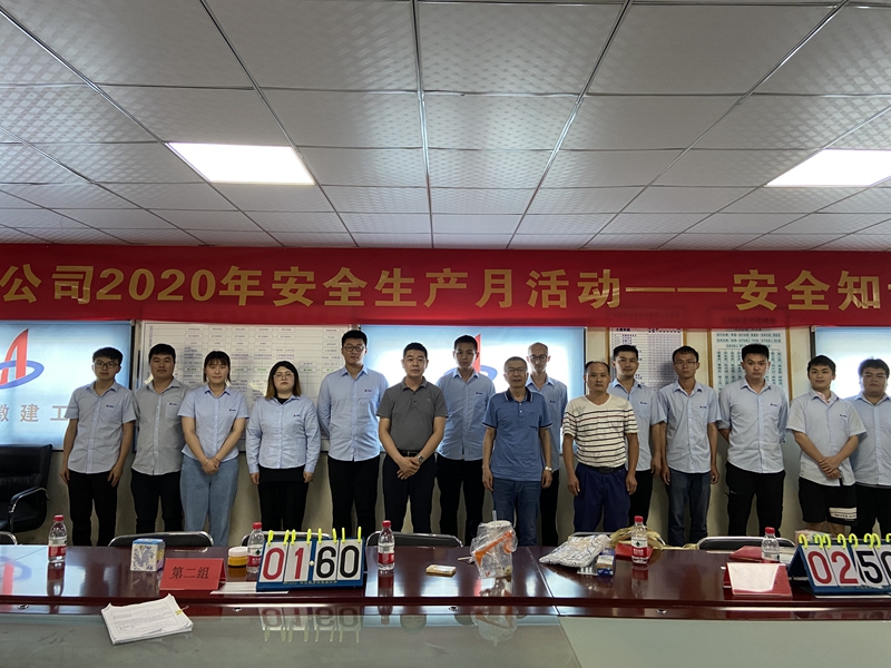 6月12日下午,二公司于濱湖沁園項目組織開展安全生產月安全知識競賽活動,二公司各在建項目共4只代表隊參賽。最終,濱湖沁園項目代表隊、銀城項目代表隊、康利園項目代表隊分獲一、二、三等獎。