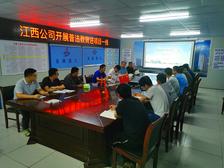為進一步提高全體職工的法律意識和疫情防控意識,為分公司做好疫情防控常態化工作和生產經營工作提供強有力的法律保障,6月19日下午,江西公司黨支部書記龔英全利用陰雨天,在鳳凰新天二期項目部會議室為項目近20名職工講授一堂普法教育課。