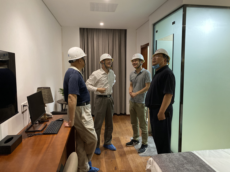 鄭成雨一行深入施工現(xiàn)場,詳細聽取了項目負責人關(guān)于樣板間制作以及下一步施工計劃等有關(guān)工作的匯報。鄭成雨在調(diào)研中對本項目整體設(shè)計布局、家具家電和設(shè)備材料選型以及樣板間制作進度、質(zhì)量給予了充分肯定,尤其對本項目石膏板吊頂采取的防開裂措施以及室內(nèi)防水措施予以高度評價。