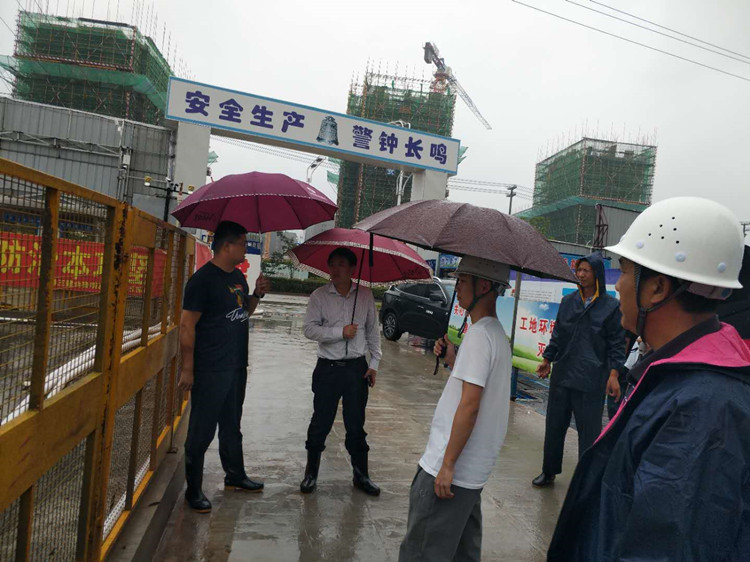 金寨縣紀委常委、縣監察局局長張英洲冒雨前往金寨明發超高層項目調研項目防汛抗洪工作