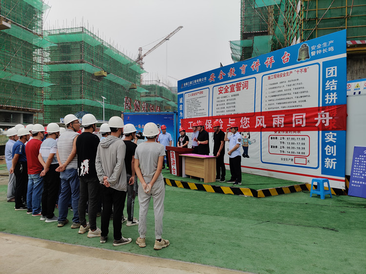 2020年7月21日,臨泉縣人社局副局長段全紅一行到三建臨泉金科城項目宣貫職業病預防及工傷保險政策,項目部全體管理人員及各班組共計20余人參與此次宣講。
