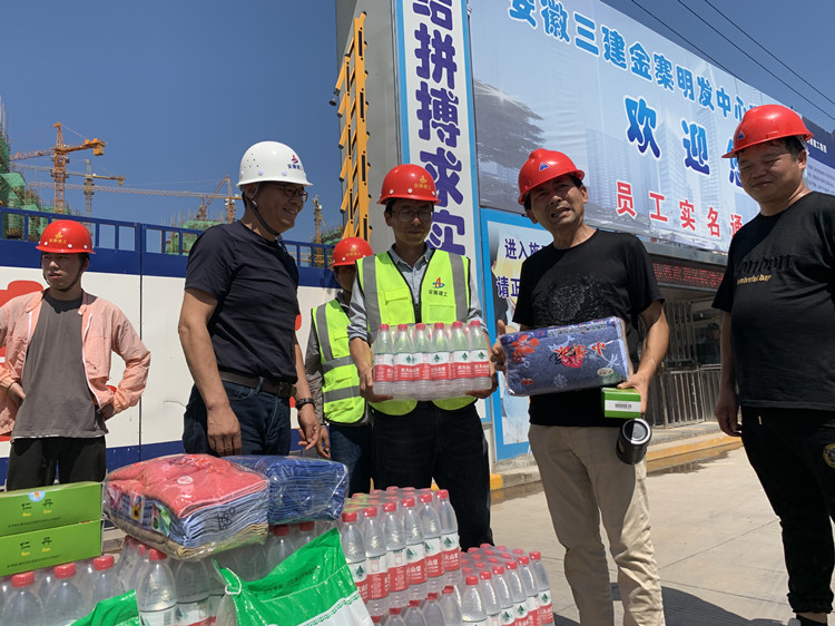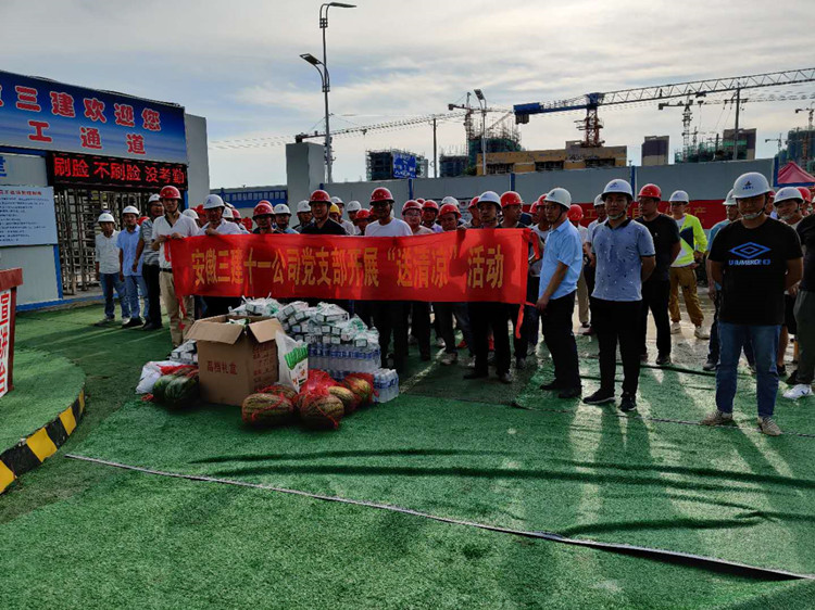 梅雨一去,酷暑即來。近日來驕陽似火,氣溫直線上升。為進(jìn)一步貫徹落實防暑降溫工作相關(guān)要求,切實維護(hù)職工安全健康權(quán)益,8月1日-5日,安徽三建十一公司領(lǐng)導(dǎo)班子紛紛前往項目一線開展“送清涼”活動,為奮戰(zhàn)在高溫一線的干部職工送去清涼油、風(fēng)油精、綠豆、礦泉水等防暑降溫用品,更送去了真摯的關(guān)懷。