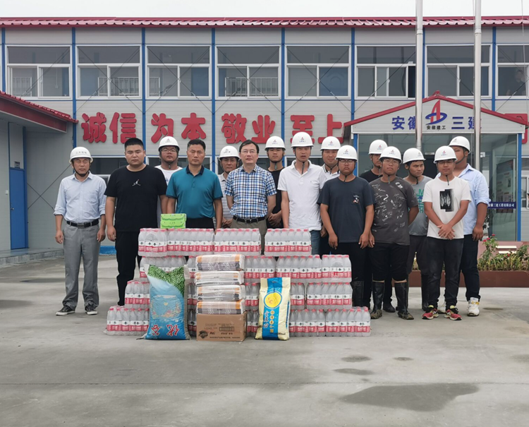 2020年8月20日,頂著炎炎烈日,臨泉廬陽現代產業園管委會前往安徽三建承建的臨泉欣榮農民返鄉創新創業基地項目開展”夏季送清涼“活動。