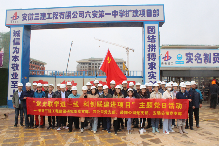 為認真落實公司黨史學習教育有關要求,4月27日,來自安徽三建工程建設研究院、裝飾公司、安裝公司、四公司黨支部45名黨員,項目青年技術管理人員等在六安一中項目開展了“聯學黨史進一線,聯建科創進項目”主題黨日活動。活動緊扣學黨史、悟思想、辦實事、開新局的要求,為項目一線送來了一堂黨史課,圍繞項目技術創新開展了座談,四個支部還簽署黨建科技創新聯盟公約,為下一步黨建促創新打下了堅實的組織基礎。