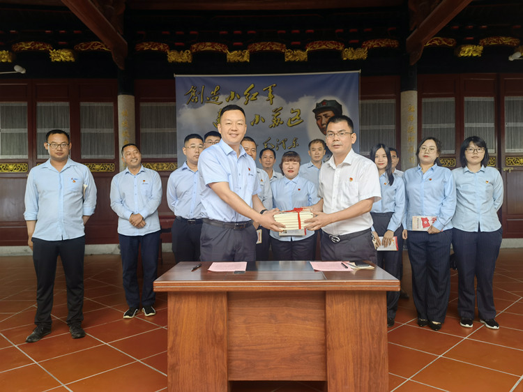 建行漳浦支行總支書記、行長楊思露與王寅生共同簽訂支部共建協議,儀式上楊思露代表漳浦建行向項目部贈書,并希望雙方不斷加強黨建工作交流,共同提高黨建工作水平。交流會上雙方就黨建和業務工作進行深入交流,一同積極探索創新共建新方式,爭取在黨建和業務層面取得更多豐碩成果,不斷推動黨建與業務工作的緊密結合、相互提高,形成良性互動,做到“黨建聯動,攜手并進”。