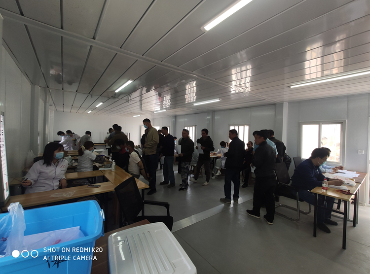 目前安徽三建雄安容西片區安置房B3標段項目施工工作面已全部鋪開,隨著氣溫的上升,炎熱的夏天即將到來,高溫炎熱天氣是各類急性疾病及并發癥的高峰期。為保障農民工身心健康,關愛農民工,5月10日上午,華力勞務公司配合項目部為農民工開展健康免費體檢活動,為農民工健康撐起“保護傘”。