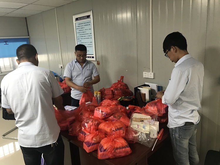 活動(dòng)前一天,項(xiàng)目舉行了愛心募捐,得到廣大職工積極響應(yīng),項(xiàng)目部隨后用捐款為老人們購(gòu)買了毛巾、牙膏、牙刷等生活用品。