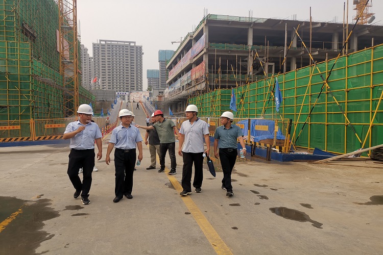 7月8日下午,淄博市建筑工程質量安全環保監督站站長王衛東一行深入安徽三建淄博明發世貿中心項目進行檢查指導工作,項目部就生產、安全文明施工等方面的具體做法與措施成效進行現場匯報。