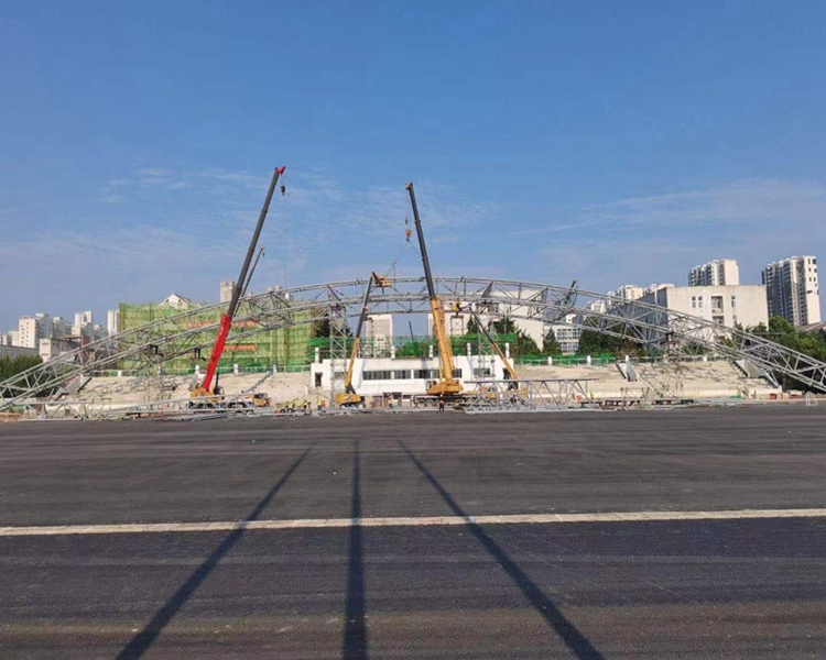 7月31日凌晨3點,合肥一中品質提升改造工程及新建藝術禮堂項目體育場看臺158米跨度的鋼結構雨棚順利合攏,標志著項目勞動競賽取得階段性成果。