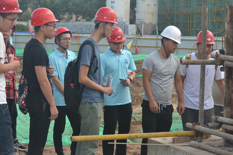 一大早,30余位來自西安理工大學土木工程學院大三在讀學生在指導老師張昭教授、王松鶴教授、鐘麗佳博士的帶領(lǐng)下來到了項目部。在會議室,項目經(jīng)理林通、技術(shù)負責人鄭國強對安徽三建公司及項目部情況做了具體介紹。隨后,在項目部管理人員的帶領(lǐng)下,教研組成員分成不同批次的小組,去現(xiàn)場開展教研學習活動。在參觀過程中,項目管理人員詳細地跟同學們講解了現(xiàn)場施工標準、施工技術(shù)、施工機械等相關(guān)知識。對于同學們提出的問題,管理人員均耐心解答,整個過程同學們表現(xiàn)出極大的學習興趣。項目現(xiàn)場干凈整潔、布局有序,使師生們近距離感受到安徽三建的現(xiàn)代建筑理念和綠色文明施工,也展示了公司先進的施工技術(shù)管理水平。參觀結(jié)束后,大家回到會議室,對現(xiàn)場參觀進行了心得交流。